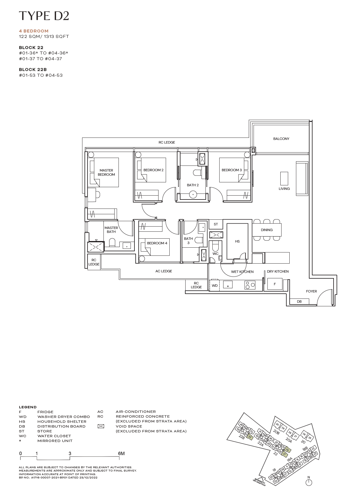 | 4 Bedroom | D2 | 1,313 | 6 | $3,504,000 |